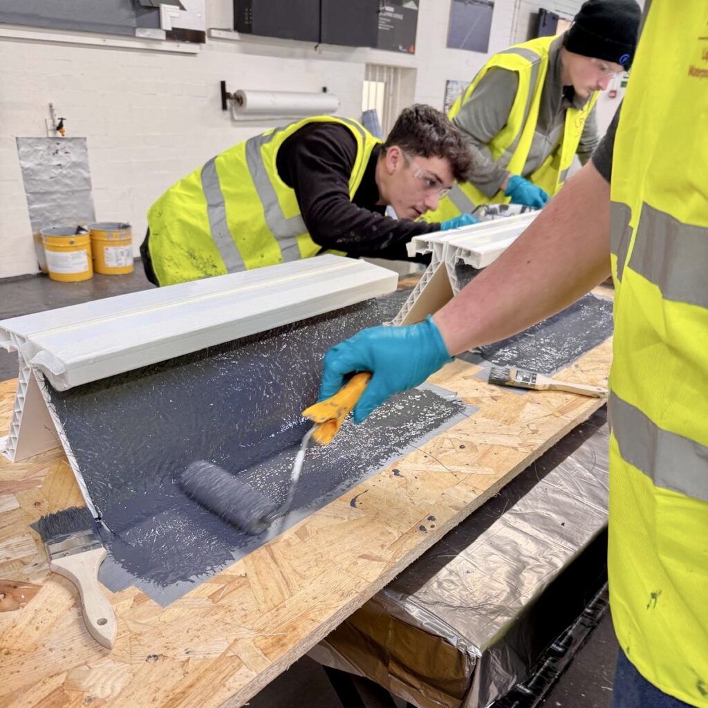 The training also included practicalities such as how to plan work and address health and safety issues. A hands-on session followed with trainees applying a Glass Reinforced Polymer (GRP) roofing system to some sections of rooflight kerb. They were taught how to clean and prepare the surface; apply various coatings; what to do if the weather deteriorates; how to finish the job, and clean-up.